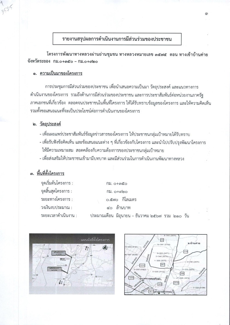 รายงานสรุปผลการดำเนินงานการมีส่วนร่วมของประชาชน โครงการพัฒนาทางหลวงผ่านย่านชุมชน ทางหลวงหมายเลข 3574 ตอน ทางเข้าบ้านค่าย จังหวัดระยอง กม.0+350 - กม.0+920