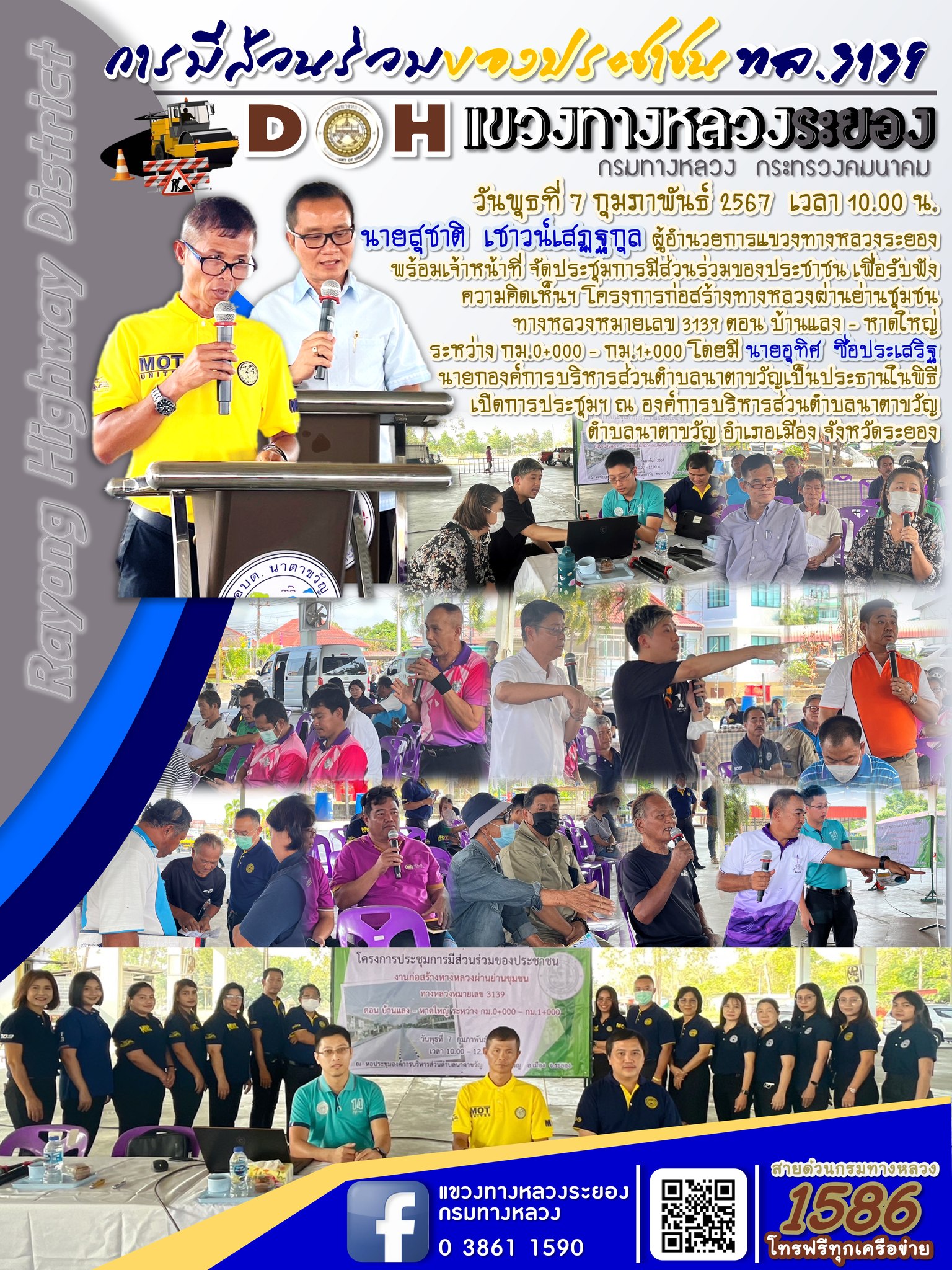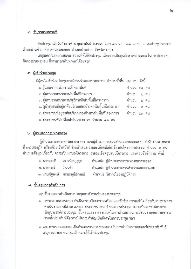 รายงานสรุปผลการดำเนินงานการมีส่วนร่วมของประชาชน โครงการพัฒนาทางหลวงผ่านย่านชุมชน ทางหลวงหมายเลข 3139 ตอน บ้านแลง - หาดใหญ่ จังหวัดระยอง กม.0+000 - กม.1+000