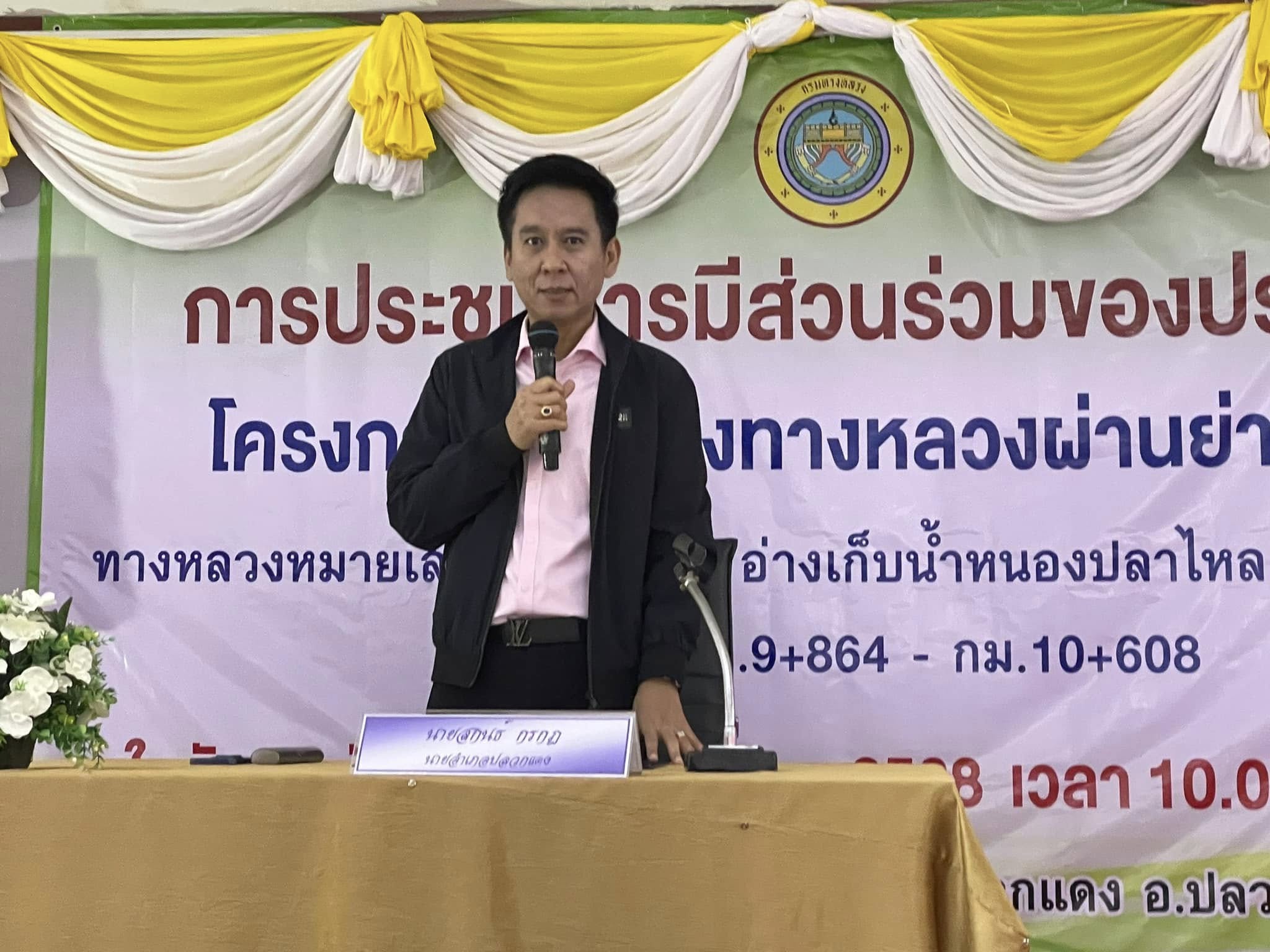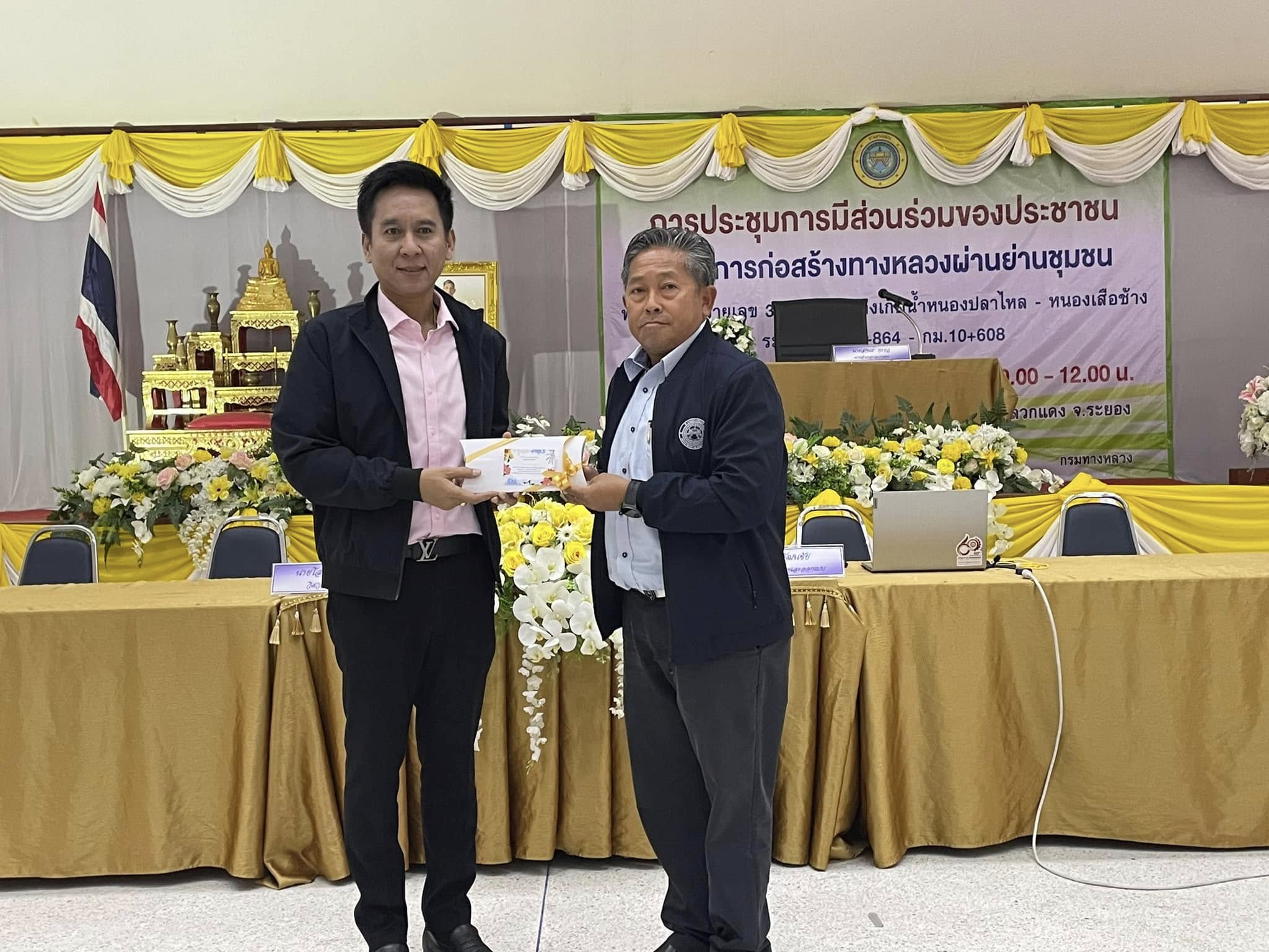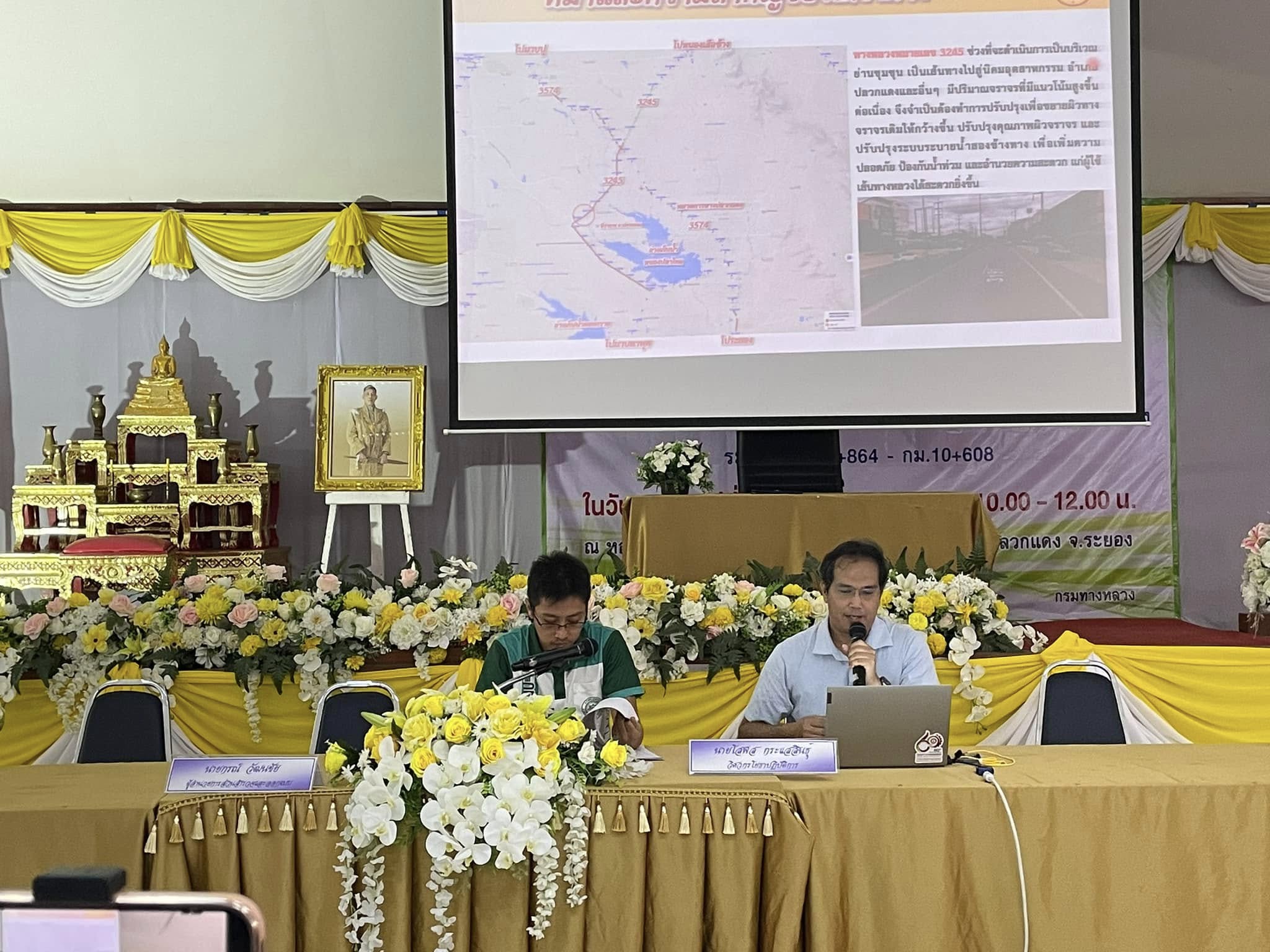 นายสุนทร แก้วศรีใส ผู้อำนวยการแขวงทางหลวงระยอง มอบหมายให้ นายปารมี ม่วงศรี รองผู้อำนวยการแขวงทางหลวง ฝ่ายวิศวกรรม พร้อมเจ้าหน้าที่จัดประชุมการมีส่วนร่วมของประชาชน