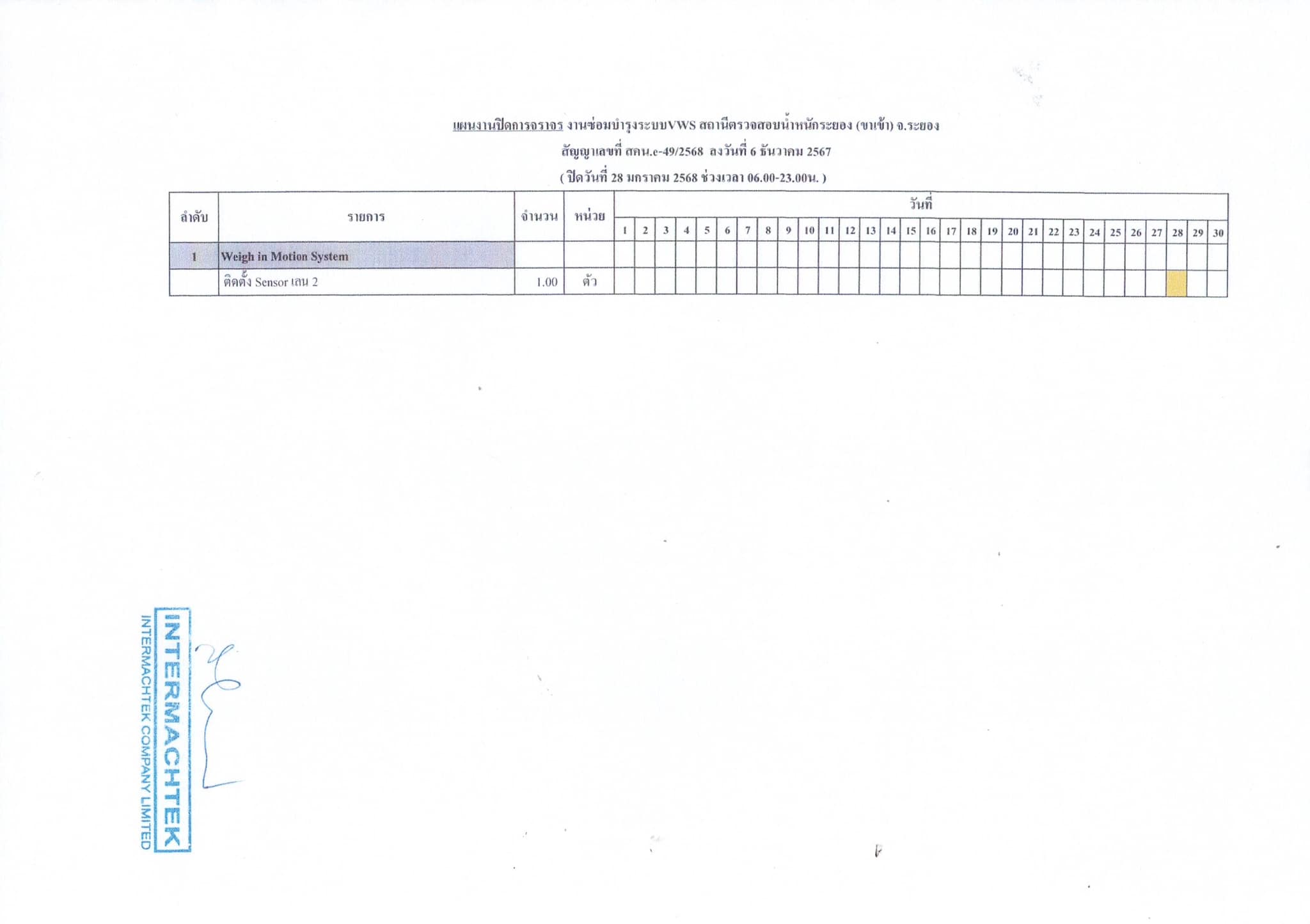 (Vitual Weigh Station) สถานีตรวจสอบน้ำหนักระยอง (ขาเข้า) จ.ระยอง 1 แห่ง ช่วง กม.26+100 - กม.26+000 ทางหลวงหมายเลข 36 (เลน 2 )