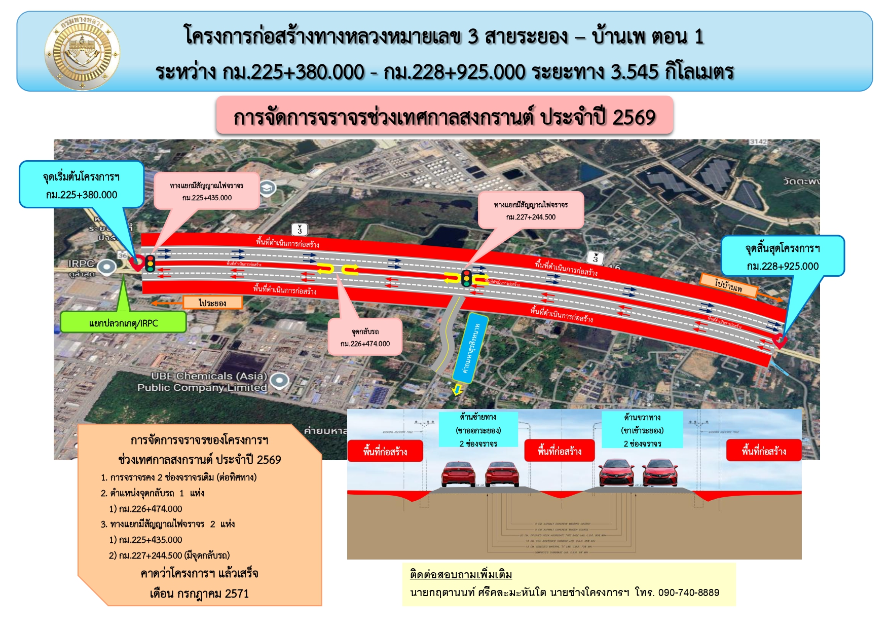 ประชาสัมพันธ์การจัดการจราจรช่วงเทศกาลสงกรานต์ ประจำปี 2569 (แขวงทางหลวงระยอง)