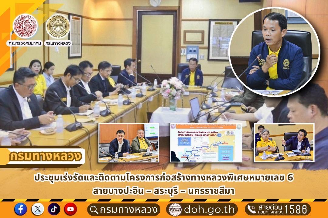 กรมทางหลวง ประชุมเร่งรัดและติดตามโครงการก่อสร้างทางหลวงพิเศษหมายเลข 6 สายบางปะอิน – สระบุรี – นครราชสีมา