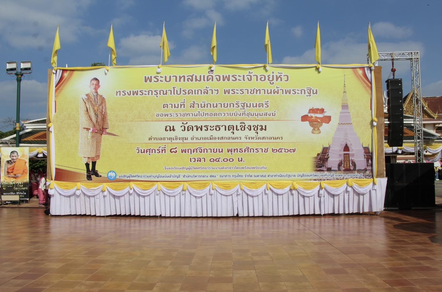 วันนี้ (8 พฤศจิกายน 2567) นางสาวแพทองธาร ชินวัตร นายกรัฐมนตรี เป็นประธานพิธีถวายผ้าพระกฐินพระราชทานสำนักนายกรัฐมนตรี ประจำปี 2567 ณ วัดพระธาตุเชิงชุมวรวิหาร อำเภอเมืองสกลนคร จังหวัดสกลนคร โดยมีนางมนพร เจริญศรี รัฐมนตรีช่วยว่าการกระทรวงคมนาคม และคณะผู้บริหาร หัวหน้าหน่วยงานในสังกัดกระทรวงคมนาคม ร่วมพิธีฯ พร้อมด้วยนายพัลลภ จันทร์งามปภากูล ผู้อำนวยการสำนักงานทางหลวงที่ 3 (สกลนคร) เป็นผู้แทนกรมทางหลวง นายประสิทธิ์ สาขา ผู้อำนวยการแขวงทางหลวงสกลนครที่ 1 และเจ้าหน้าที่ในสังกัดสำนักงานทางหลวงที่ 3 (สกลนคร) เข้าร่วมในพิธีฯ ดังกล่าว